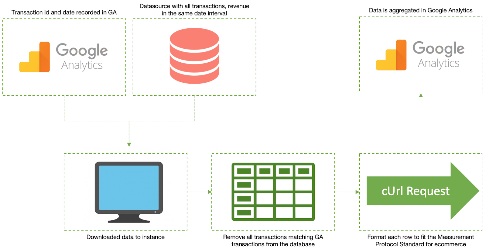 Fortunately, many issues—such as updating a user status from your CRM or sending refund data—are solved by using Google Analytics’ Measurement Protocol: