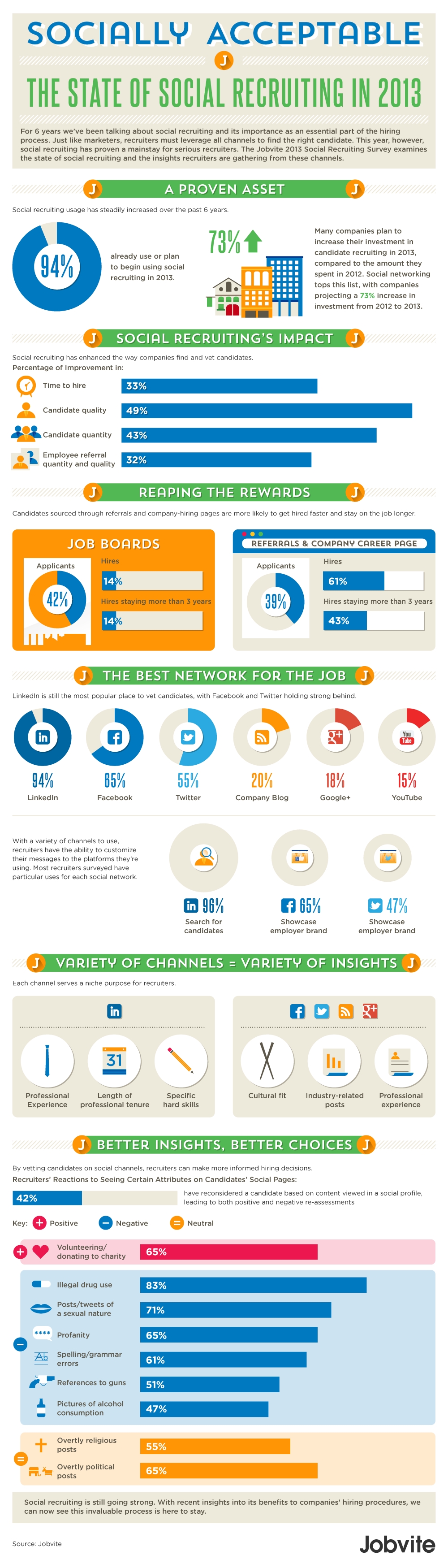 Our friends at Jobvite have just announced the results of its annual Social Recruiting Survey. Now in its sixth year, the Jobvite annual Social Recruiting Survey is the most comprehensive of its kind. The survey was completed in July 2013 by more than 1,600 recruiting and human resources professionals.