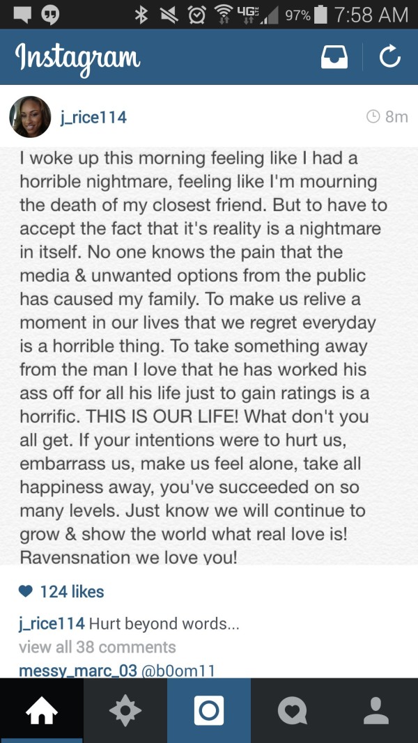 On Tuesday Janay Rice privately attacked the NFL over its decision to indefinitely suspend her husband. In the post Janay said she felt as if she was living a nightmare.