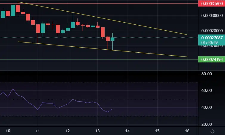 At the time of writing this article Terra Luna Classic (LUNC) is now trading back at $0.000271, a bearish move for LUNC, although I would not begin to feel worried unless the price retested $0.000241 and lost support.