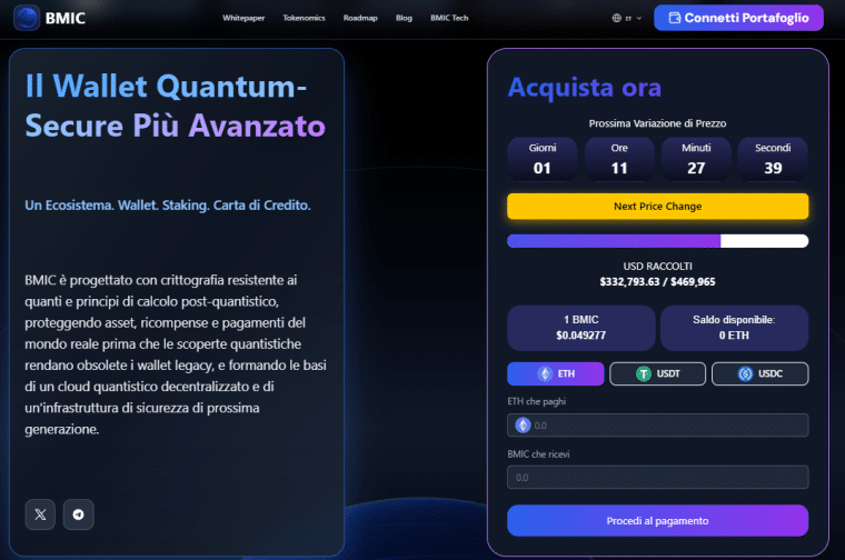 Inoltre, chi acquista $BMIC durante la prevendita può immediatamente mettere in staking la criptovaluta nativa per ottenere ricompense dinamiche, contribuendo alla crescita della “Quantum Meta-Cloud” del progetto. I partecipanti alla prevendita stanno già dimostrando un forte interesse, sostenendo il momentum iniziale verso i futuri traguardi della roadmap.