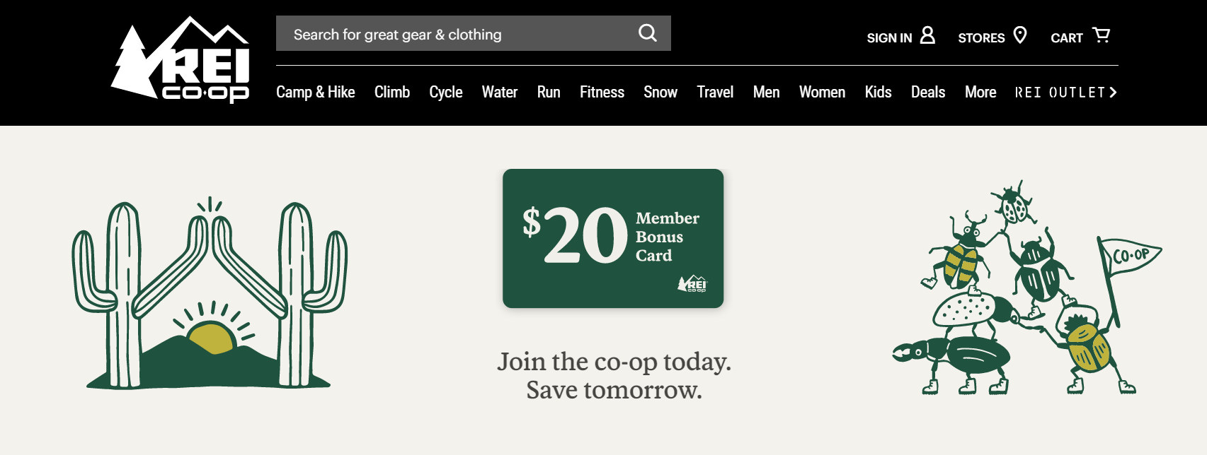 REI, the omnichannel outdoor gear, clothing and footwear retailer has a paid membership program that takes a different approach to loyalty. It is unique in its approach to the community of customers, content, and aligning with customer values.