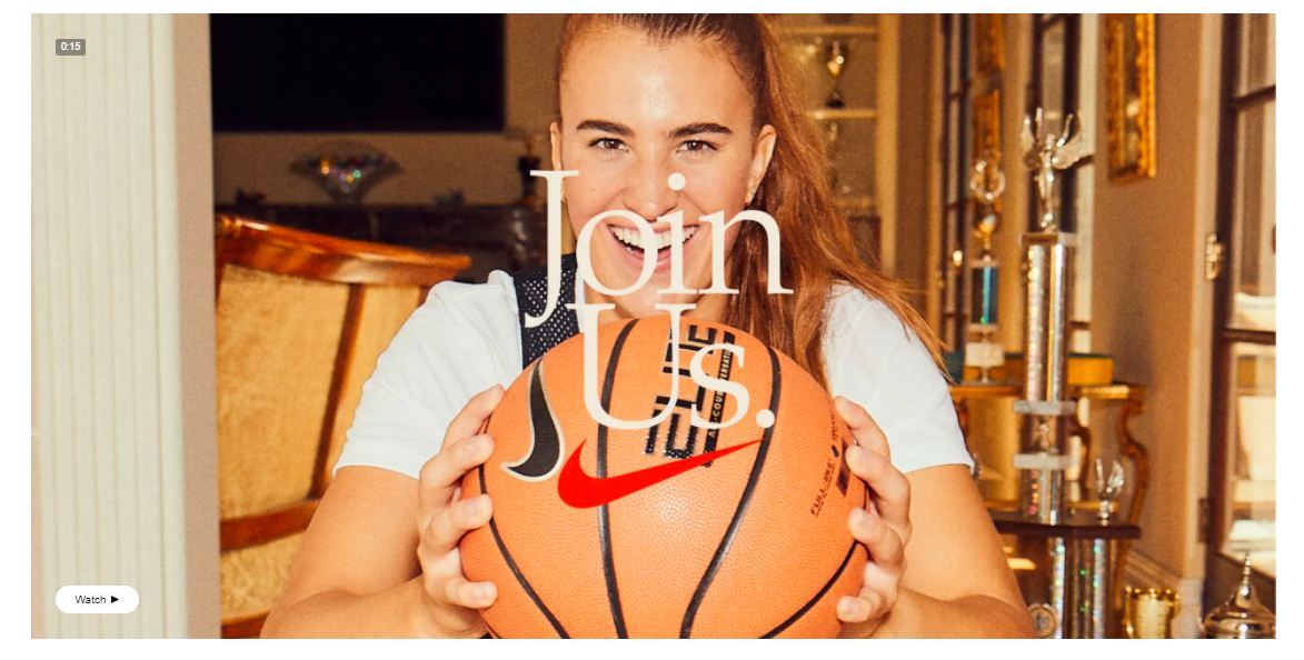 The main image of Nike’s loyalty programA true powerhouse in marketing, Nike builds up the excitement in their loyalty program with a video enticing viewers to “Join Us.”